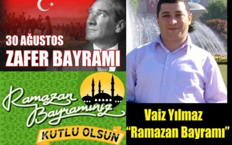Bugün tüm yurtta çifte bayram kutluyoruz. Hem 30 Ağustos Zafer Bayramını hemde mübarek Ramazan Bayramını aynı anda kutlamanın mutluluğunu yaşıyoruz. Tüm Türkiye'de olduğu gibi 30 Ağustos Zafer Bayramı için ilçemizdede çeşitli programlar düzenlendi. Saat 09:45'te Cumhuriyet Meydanında başlayacak olan program daha sonra protokolün bayramlaşma ziyaretleri ile devam edecek. Vatandaşlarla bayramlaşma programı ise Yasemin Düğün Salonunda saat 11:15'te başlayacak. İlçe Vaizi Osman Yılmaz bu haftaki köşesinde Ramazan Bayramı ile ilgili yeni bir yazı yayınladı. işte Vaiz Yılmaz'ın Ramazan Bayramı yazısı..