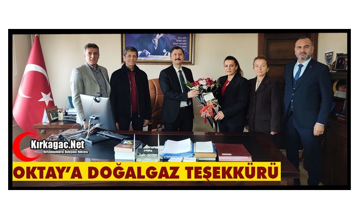 Mehmet Günek Türkbirliği İlkokulu Okul Müdürü Esra Yıldırım, öğretmen Mustafa Kapısız, Okul Aile Birliği Başkanı Nuray Atlı ve Kadriye Mahalle Muhtarı Yasin Sarı’dan oluşan heyet, Kırkağaç Kaymakamı Zafer Oktay’ı makamında ziyaret ederek okullarına doğalgaz bağlanması nedeniyle teşekkür etti.