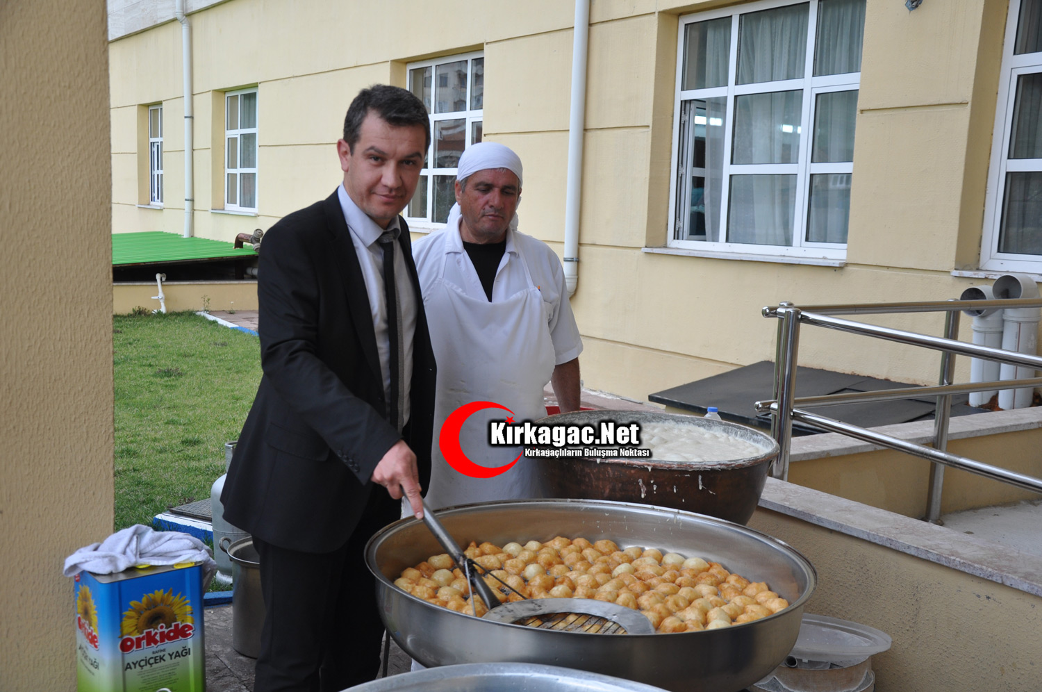 Okunan duanın ardından lokma hayrına geçildi. Kırkağaç KYK Müdürü Ali Sönmez’in ilk lokmayı pişirip servis etmesinin ardından hayır başladı.