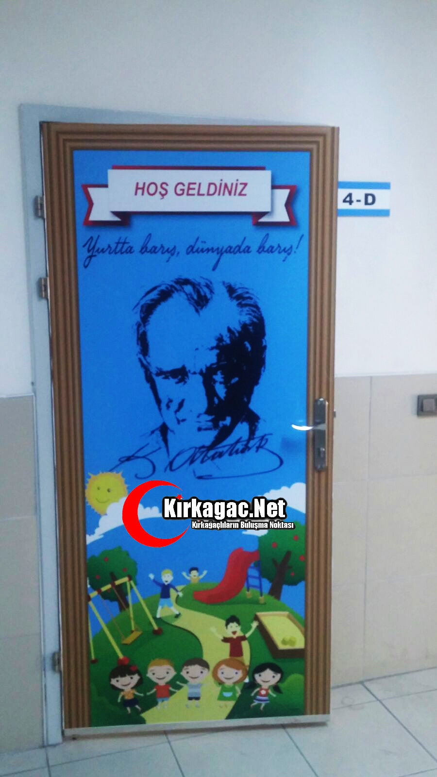 Önce masa ve sıraların yerini kasa ve paletler aldı, daha sonra ise ecza dolabı ile bilim köşesi oluşturuldu. Sınıf kapısına muhteşem bir Atatürk fotoğrafıyla hoş geldiniz yazıldı.