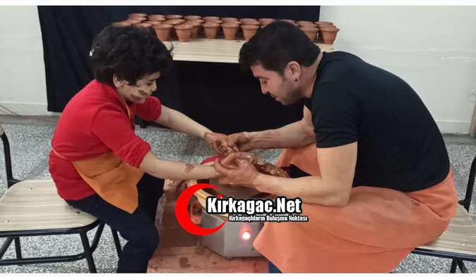 Çömlek sanatçısı Mehmet Atalay, meraklı öğrencilere bu güzel sanatı öğretirken ortaya neşeli görüntüler çıktı.