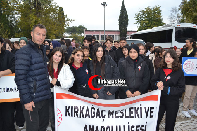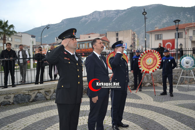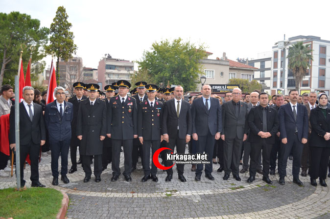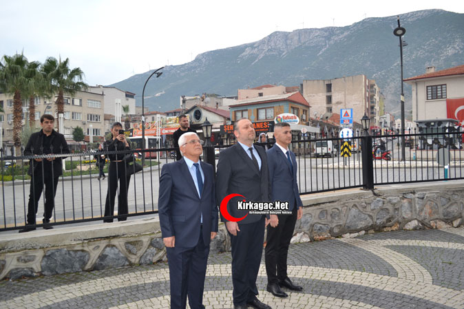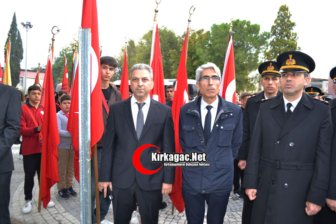 Tören 2 dakikalık saygı duruşu ve İstiklal Marşı’nın okunmasıyla başladı. Tören Kırkağaç Kaymakamı Zafer Oktay, Kırkağaç Belediye Başkanı Üstün Dönmez ve Kırkağaç Jandarma Komando Eğitim Merkezi Komutanı Kıdemli Albay Ramazan Erkul’ın Atatürk Anıtına çelenk sunmasıyla son buldu.