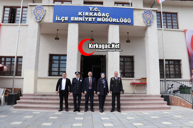 10 Nisan Türk Polis Teşkilatının Kuruluş Yıldönümü ve Polis Haftası nedeniyle saat 10.00'da Atatürk Anıtı'nda gerçekleştirilen törene Kırkağaç Kaymakamı Zafer Oktay, Kırkağaç Belediye Başkanı Üstün Dönmez, Kırkağaç Jandarma Komando Eğitim Merkez Komutanı Jandarma Albay Ramazan Erkul, Cumhuriyet Savcısı Rukiye Gültekin, İlçe Emniyet Müdür V. Bayram Kaya, İlçe Milli Eğitim Müdürü Halil Boncuk, ilçe emniyet müdürlüğünde görevli tüm polisler, bekçiler ve vatandaşlar katıldı.