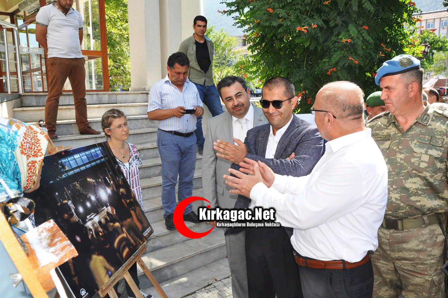 Kırkağaç Belediyesi önünde düzenlenen resim sergisine Kırkağaç Kaymakamı Cengizhan Yılmaz, Kırkağaç Belediye Başkanı Yaşar İsmail Gedüz, Manisa Büyükşehir Belediyesi Kırkağaç Koordinatörü Ali Rıza Duman, İlçe Milli Eğitim Müdürü Adem Yalçınkaya, İlçe Jandarma Komutanı Enver Gündüz, İlçe Emniyet Müdür Vekili Kenan Yalçınkaya, siyasi parti temsilcileri, okul müdürleri, daire amirleri ve vatandaşlar katıldı.