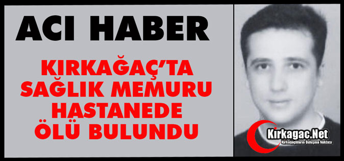 Kırkağaç Devlet Hastanesinde geçici görevle çalışmakta olan Anestezi Sağlık Memuru Mehmet Özcan bugün iddiaya göre hastanenin tuvaletinde ölü bulundu.