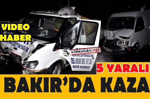 Kırkağaç’ın Bakır Beldesinde meydana gelen trafik kazasında 5 kişi yaralandı. Bugün(Çarşamba) saat 17:00 sularında Kırkağaç yönünden Akhisar istikametine gitmekte olan Ali Özdemir’in kullandığı 45 F 7501 plakalı kamyonetle karşı yönden gelen Halil Çelik’in idaresinde ki 45 Y 8730 plakalı kamyonet Bakır girişinde kafa kafaya çarpıştı.