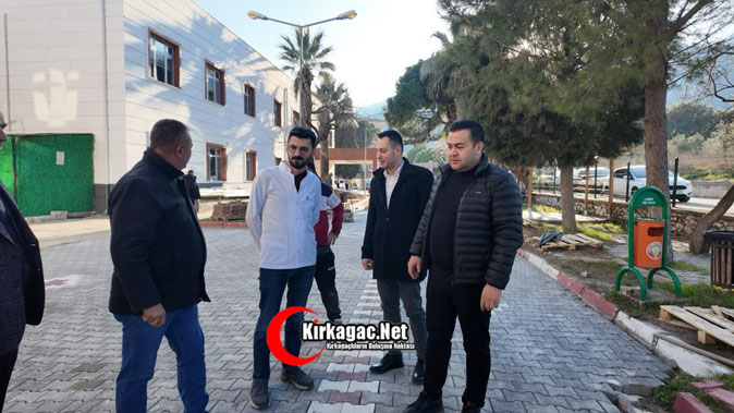 Kırkağaç Belediyesi ekipleri tarafından parke taşları döşenirken, Kırkağaç Belediye Başkanı Üstün Dönmez’de çalışmaları yerinde inceledi.