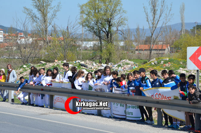 Kırkağaç Kaymakamlığı öncülüğünde ilçe sivil toplum kuruluşları da, yarış esnasında İngilizce ve Türkçe pankartlar hazırladılar.