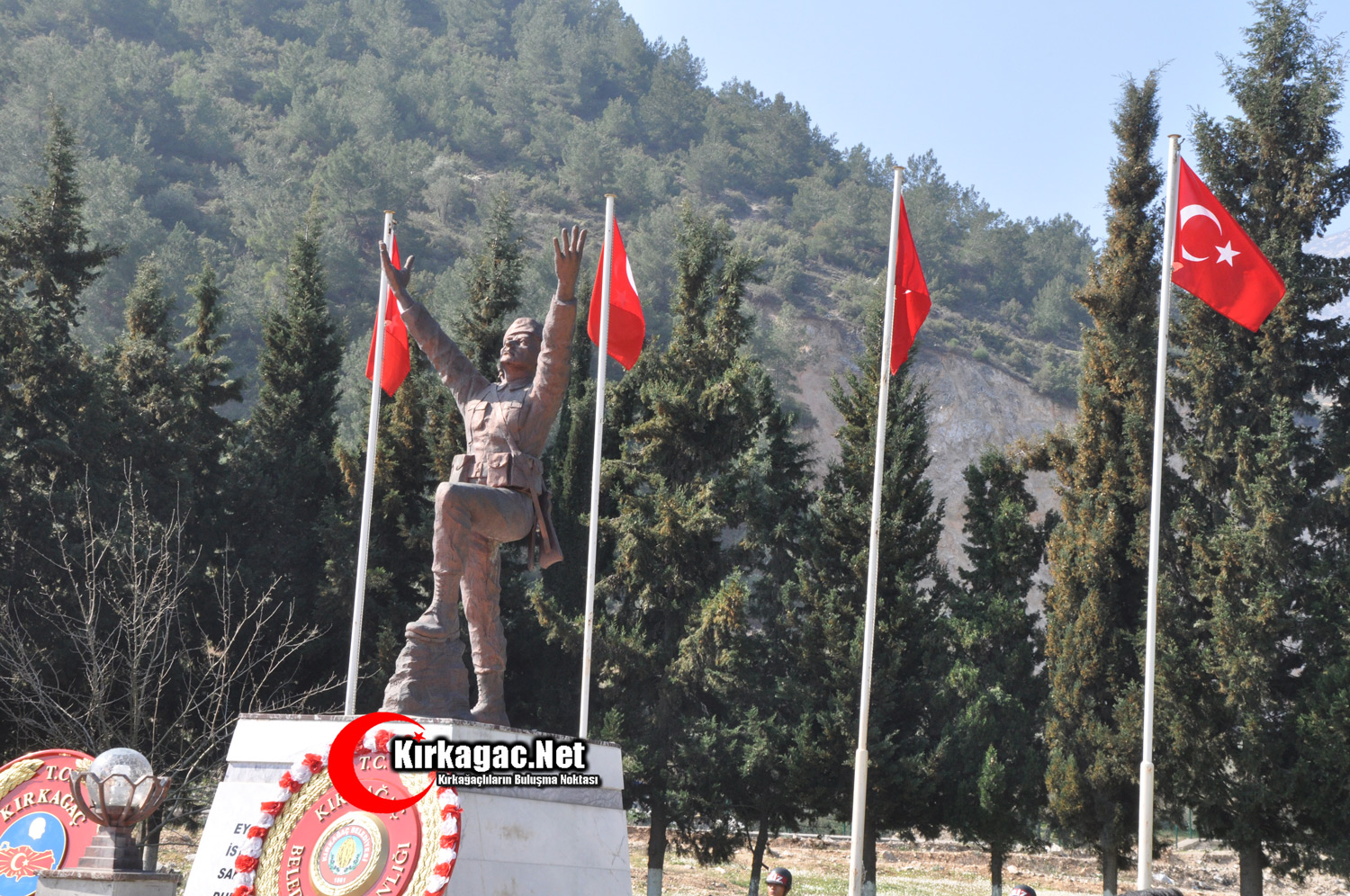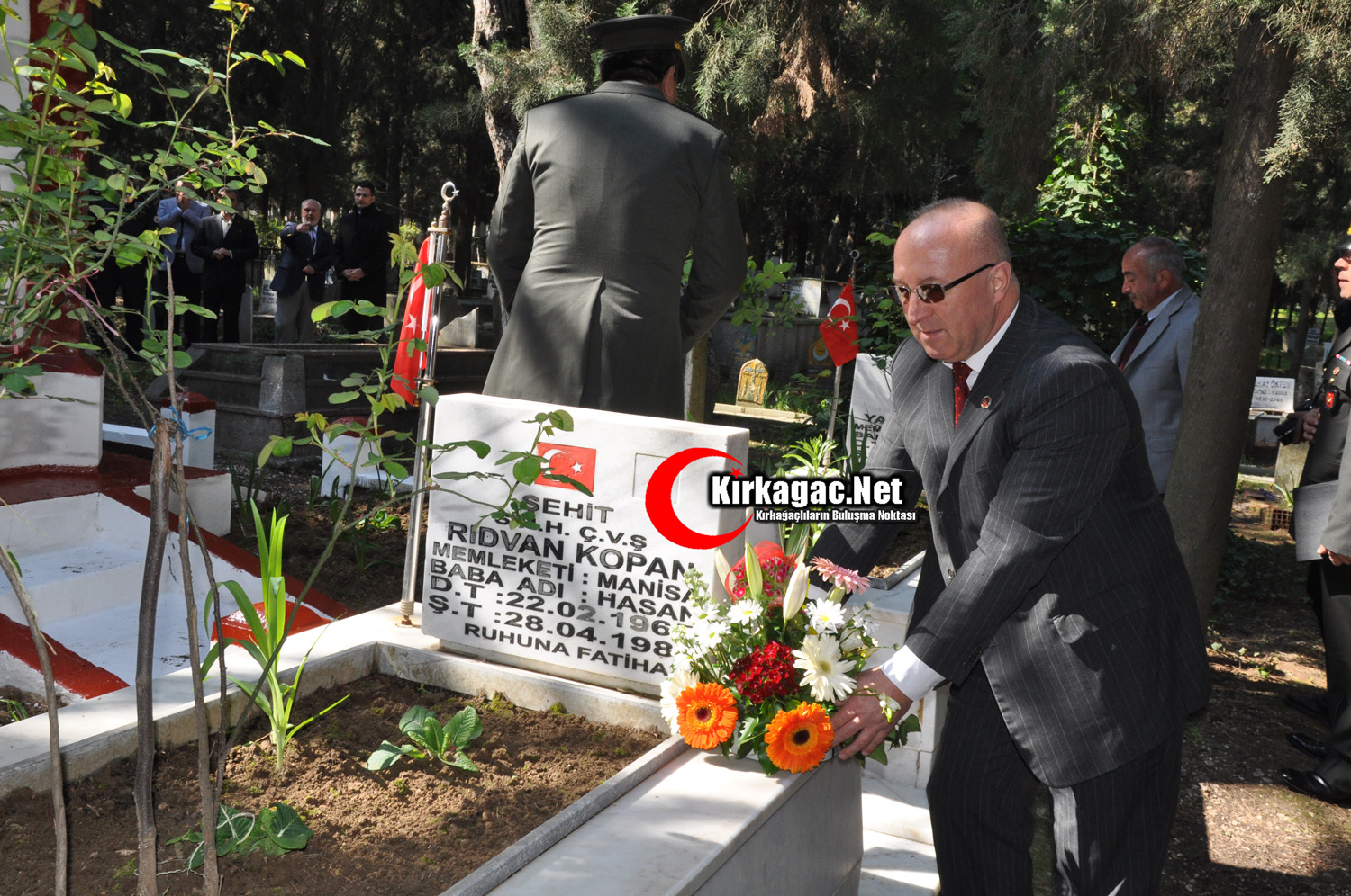 Daha sonra Kırkağaç Kaymakamı Dr.Mehmet Yeşilbaş, 6.Jandarma Komando Alay Komutanı Albay Eyüp Sabri Kirişçi ve Kırkağaç Belediye Başkan Vekili Osman Çelikel, şehitlik anıtına çelenk koydular.