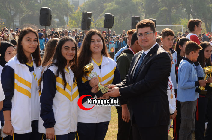 29 Ekim Cumhuriyet Bayramı münasebetiyle ilçemizde yapılan okullar arası turnuvalarda dereceye giren öğrencilere ödülleri verildi. Birincilik ödüllerini Kaymakam Murat Büyükköse, İkincilik ödüllerini Garnizon Komutanı Jandarma Albay Ahmet Sel, üçüncülük Kırkağaç Belediye Başkanı Yaşar İsmail Gedüz verdi.