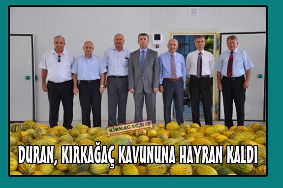 Soma ELİ Müessese Müdürü Hakkı Duran ve Müdür yardımcıları Kaymakam Ali Sırmalı’nın misafiri olarak Kırkağaç’a geldi. Kaymakam Sırmalı ile birlikte kavun depolarını gezen heyete Kaymakam Sırmalı tarafından kavun hediye edildi.