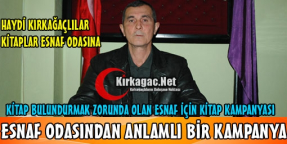 Bizde Kırkağaç Esnaf ve Sanatkarlar Odası olarak esnafımıza destek olmak üzere kitap kampanyası başlatmayı düşündük. Kırkağaçlılardan bu kampanyaya destek olmalarını istiyoruz. Haydi Kırkağaçlılar evinizde bulunan fazla kitaplarınızı Esnaf Odamıza getirmenizi rica ediyoruz” dedi.