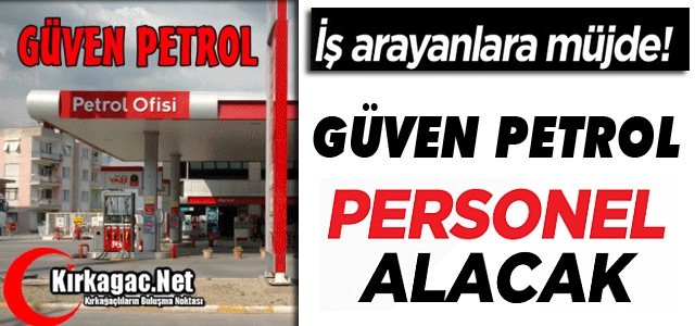 2 adet personel alımı yapacak olan Güven Petrol'de çalışmak isteyenlerin 0532 286 4600 numaralı telefonu araması ya da İlçe Mezarlığı karşısında ki Güven Petrol'e başvurması gerekiyor.