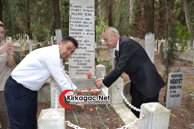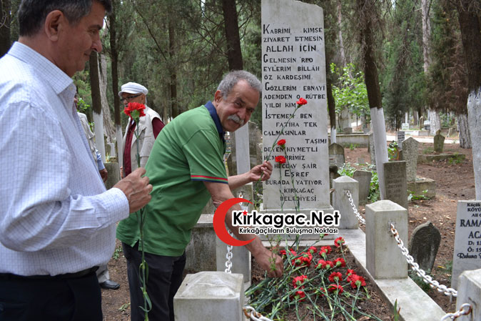 Kırkağaç’ın efsane öğretmenlerinden Ali Angı’nın sunduğu program daha sonra Şair Eşref’in ilçe mezarlığında bulunan kabri başında devam etti.