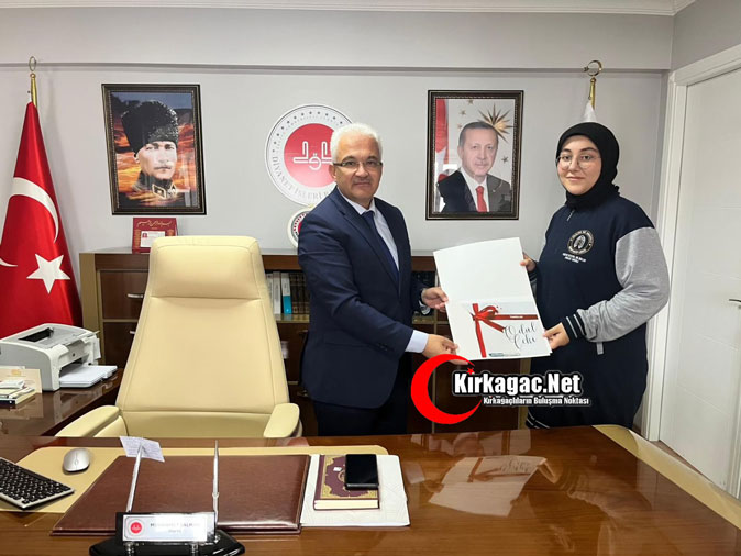 Akhisar İlçe Müftüsü Muhammet Salman, elde edilen bu anlamlı başarı dolayısıyla Meryem Nur Kara’yı makamında kabul ederek kendisine hediye takdiminde bulundu.