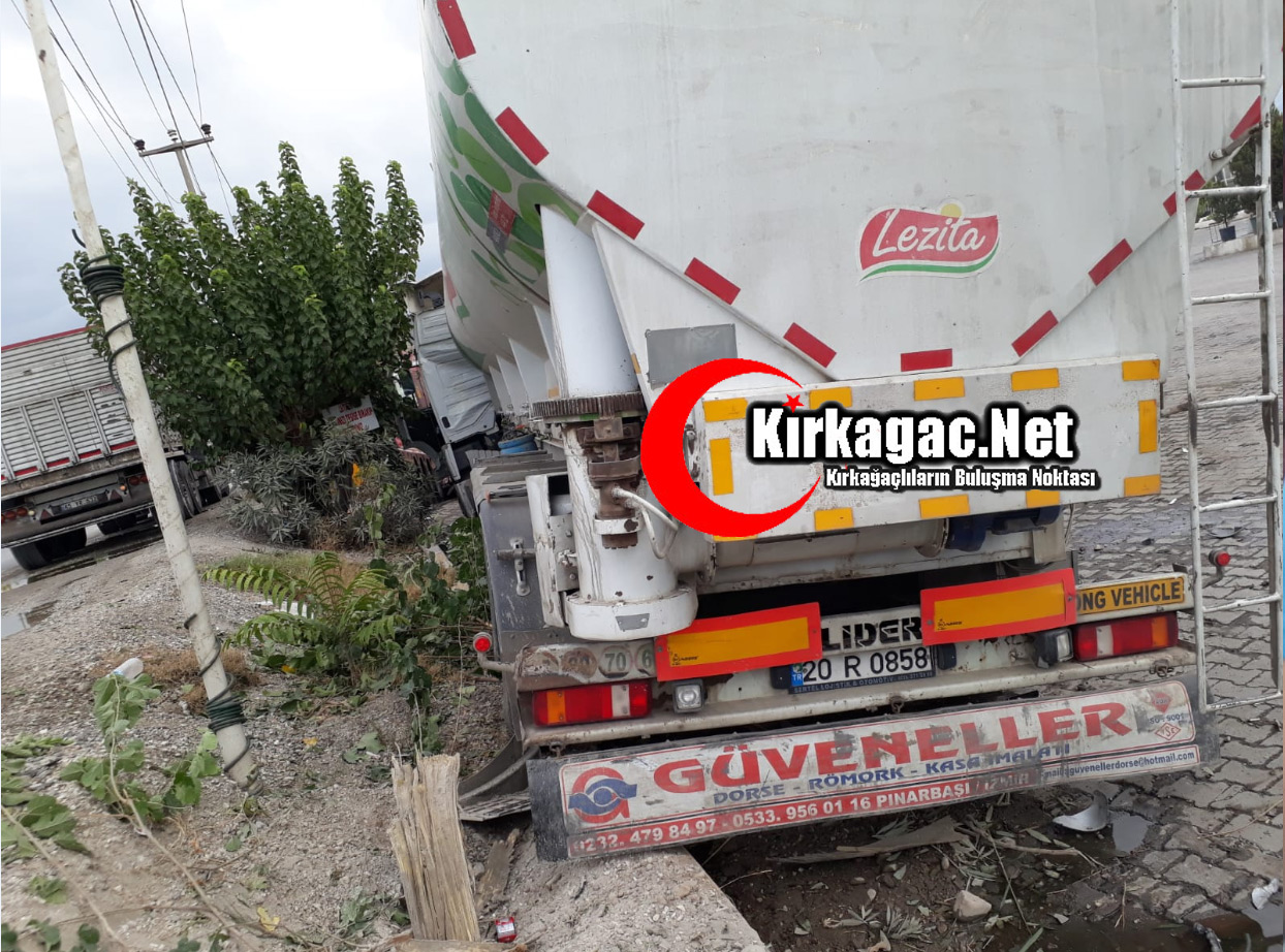 Akhisar istikametinden Kırkağaç yönüne gelmekte olan 20 R 0858 plakalı kamyon, direksiyon hakimiyetinin kaybolması sonucu bir anda yoldan çıkarak yolun sağ tarafında bulunan benzin istasyonuna daldı.