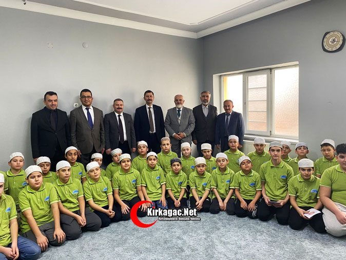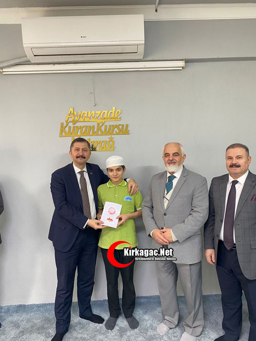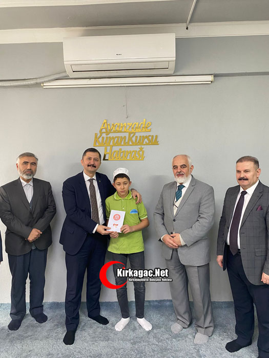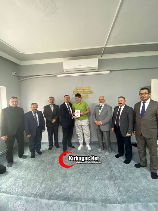 Kırkağaç Kaymakamı Zafer Oktay, Kırkağaç İlçe Müftülüğü bünyesinde hizmet veren Ayanzade Erkek Kur’ân Kursunu ziyaret ederek hıfzının yarısını tamamlayan 7 öğrenciyi tebrik etti.