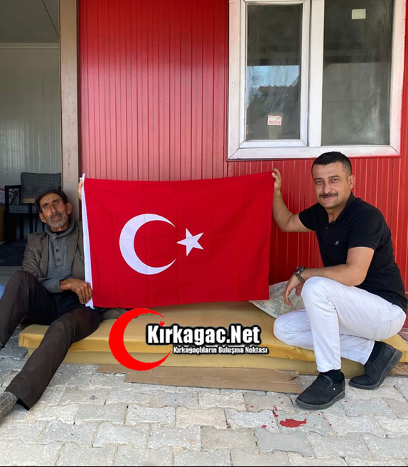 Ergün’ün gönderdiği Türk Bayrağını Kıbrıs Gazisi Hasan Amcaya getiren Manisa Büyükşehir Belediyesi Kırkağaç Koordinatörü Fahri Dinçer “Geçtiğimiz yıl vefat eden babam Hilmi Dinçer’in asker arkadaşı olan Kırkağaçlı Kıbrıs gazisi Hasan Kuru amcamızı ziyaret ettik.
