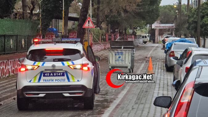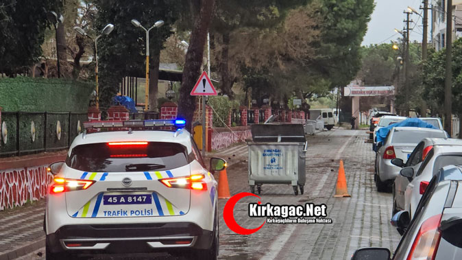 Kırkağaç İlçe Emniyet Müdürlüğü polis ekipleri yolda güvenliği sağlarlarken yol geçici olarak trafiğe kapatıldı.