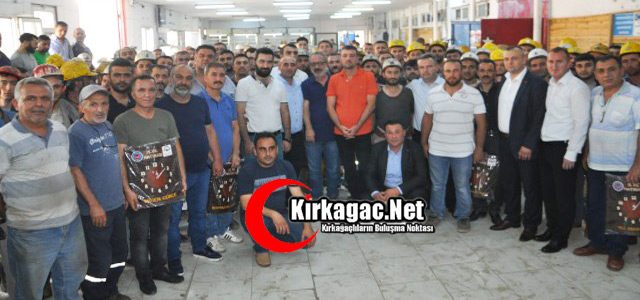 Kırkağaç’ın komşu ilçesi Türkiye Maden İşçileri Sendikası Ege Bölgesi 1 Nolu Şubesi madende çalışma hayatının 15 senesini dolduran işçilere saat hediye etti.