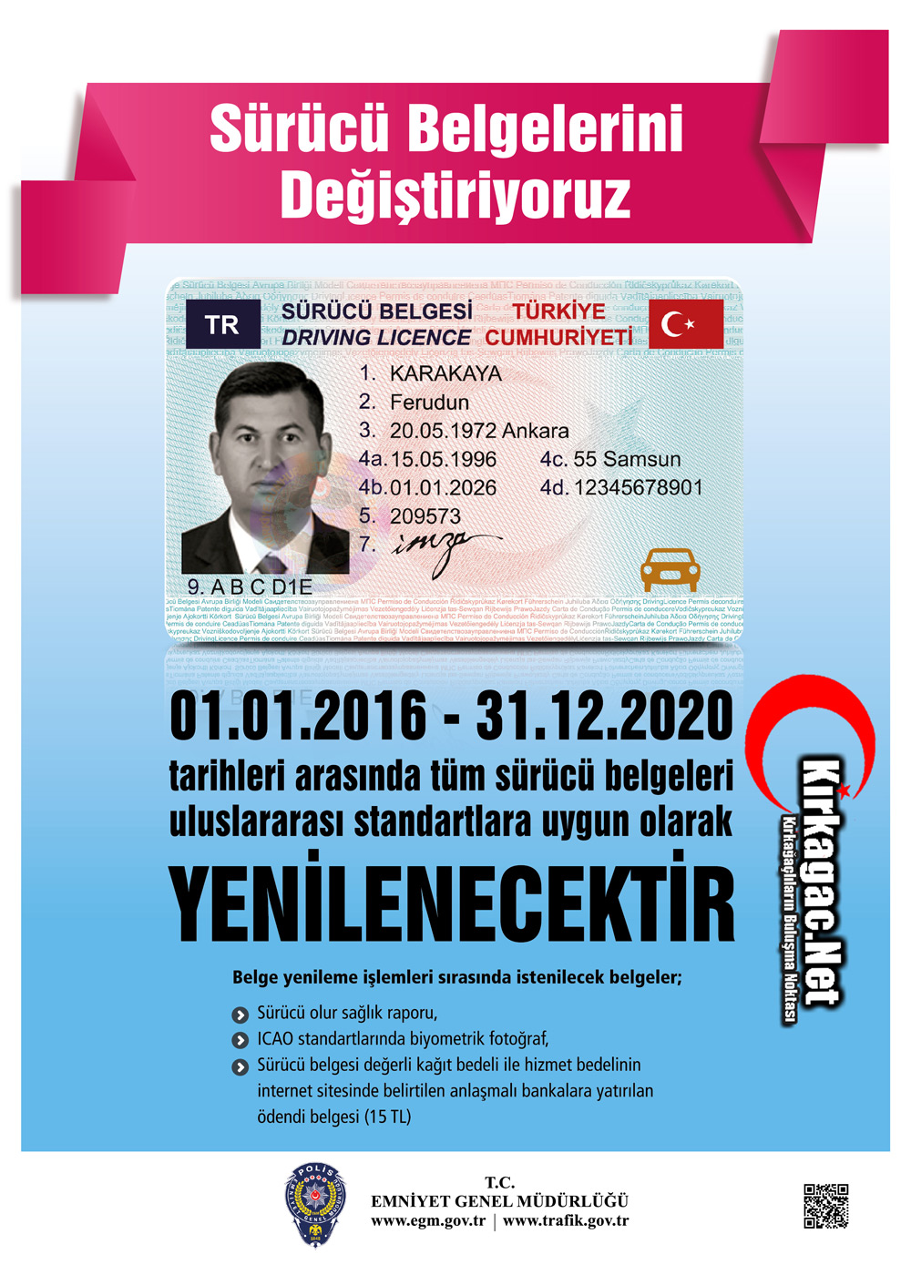 1 Ocak 2016 tarihi itibariyle ehliyet yenileme işlemleri resmen başladı.