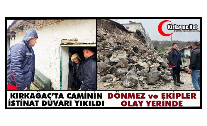Kirkagac. Net’e bir açıklama yapan Kırkağaç Belediye Başkanı Üstün Dönmez “Dualar Mahallemizdeki camimizin istinat duvarında yaşanan çökme haberini alır almaz ekiplerimizle birlikte olay yerine ulaştık. Gerekli kontrolleri titizlikle yapıyoruz.