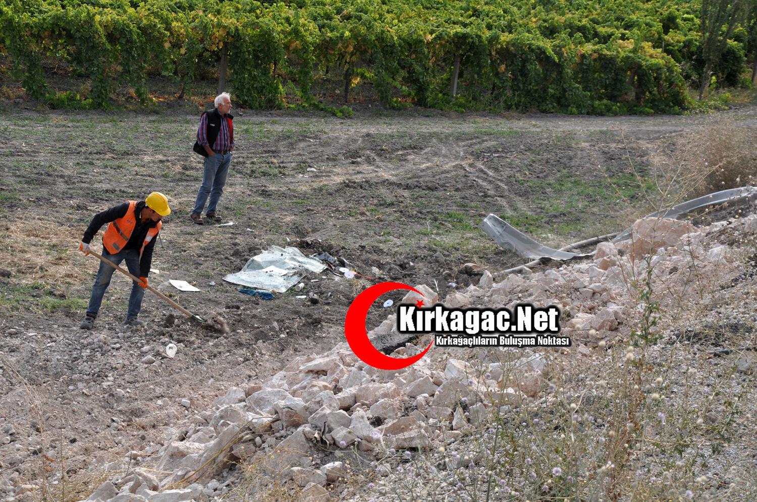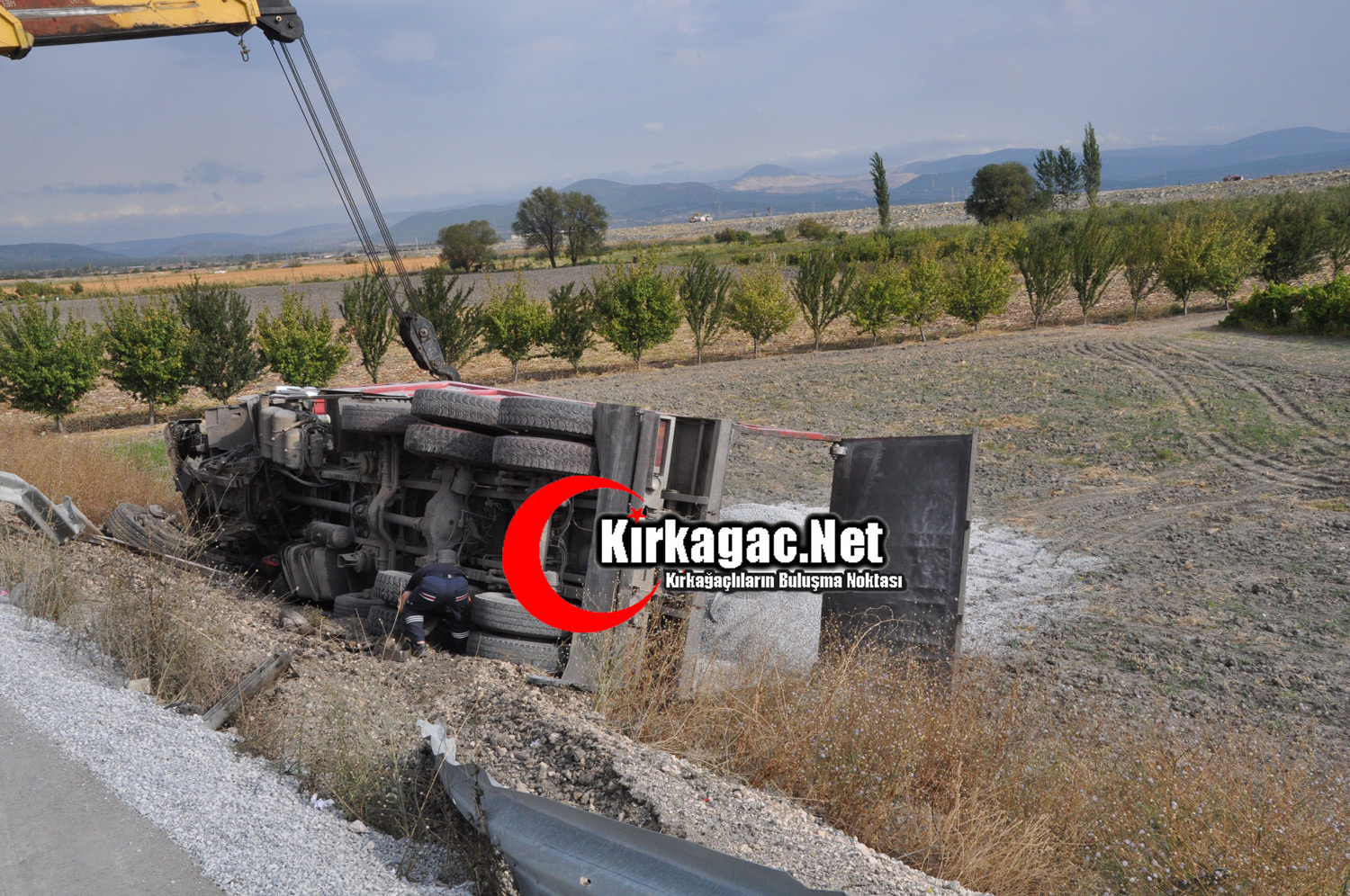 Yol yapımında çalışan iki kamyonun çarpışıp şarampole yuvarlanmasının ardından ortalık tabiri caizse savaş alanına döndü. 45 YA 0775 plakalı kamyonun şoförü H.A takla atan kamyonda sıkıştı.