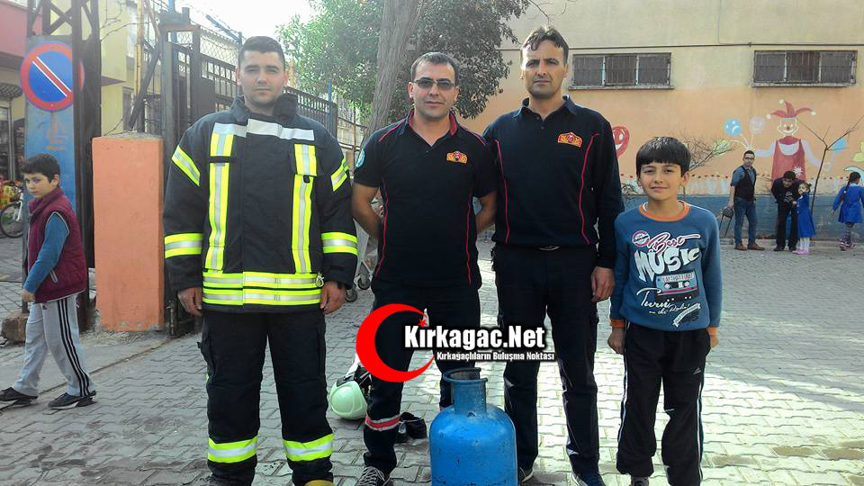 Büyük heyecana sahne olan tatbikatlar gerçeğini aratmazken, tatbikatın ardından Manisa Büyükşehir Belediyesi Kırkağaç İtfaiye Amirliğinde görevli itfaiye eri Gürkan Çolak, öğrencilere bilgi verdi.
