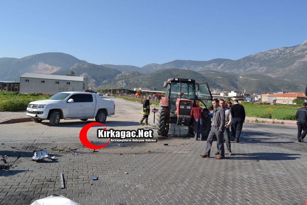 KIRKAĞAÇ’TA OTOMOBİL TRAKTÖRLE ÇARPIŞTI(VİDEO)