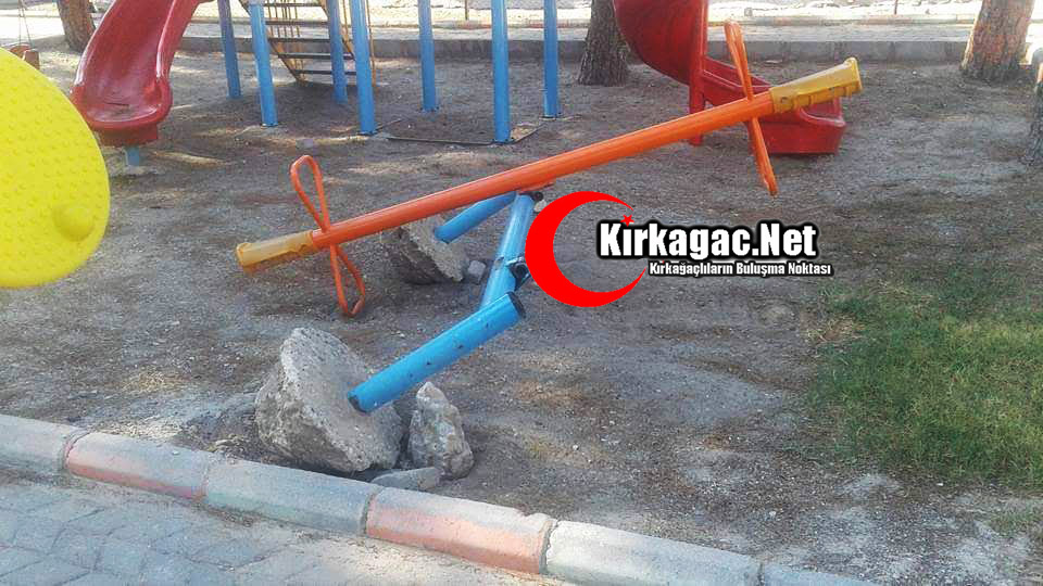 Kırkağaç Belediyesi tarafından ilçenin dört bir yanına konan ve çocukların mahalle aralarında ve parklarda ki tek eğlenceleri olan oyun grupları "memlekete faydası olmayan" birileri tarafından yapılan saldırıda büyük zarar gördü.