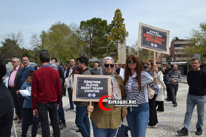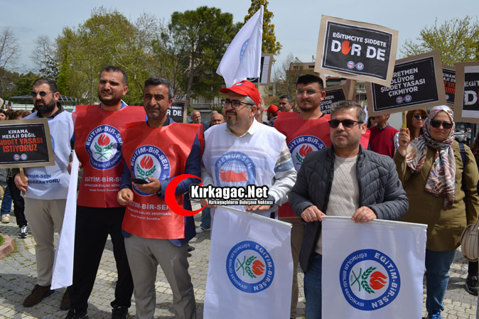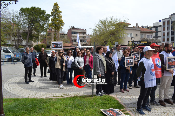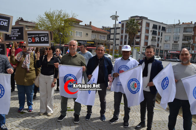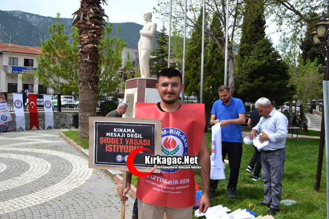 Kırkağaç’ta Saat Kulesi önünde toplanan sendika üyeleri “Susma Haykır Şiddete Hayır ve Öğretmen Ölüyor, Kanun Çıkmıyor, ” sloganları atarlarken, Kırkağaç Eğitim Bir-Sen İlçe Temsilcisi Turgay Akbayrak’ta toplanılan kalabalığa bir konuşma yaparak hain saldırıya tepki gösterdi.