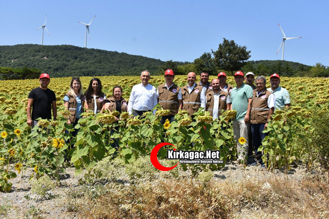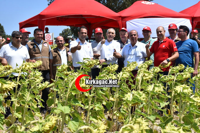 Manisa’da alternatif tarım ürünü olarak ekimi yapılan ve hasat dönemi yaklaşan yağlık ayçiçeği için Kırkağaç’ın Kuyucak Mahallesinde tarla günü yapıldı.