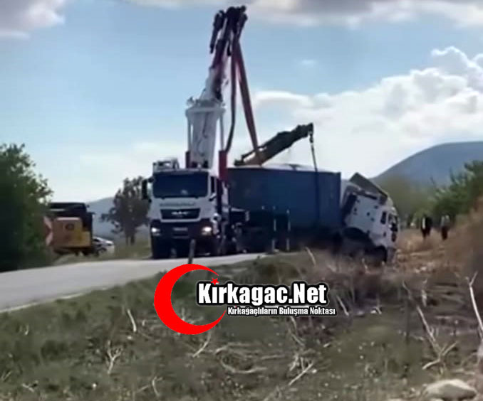 Kırkağaç’ın Gelenbe Mahallesi civarlarında seyir halindeyken bir anda direksiyon hakimiyetini kaybeden TIR yolun solunda bulunan tarla bölümüne devrildi.