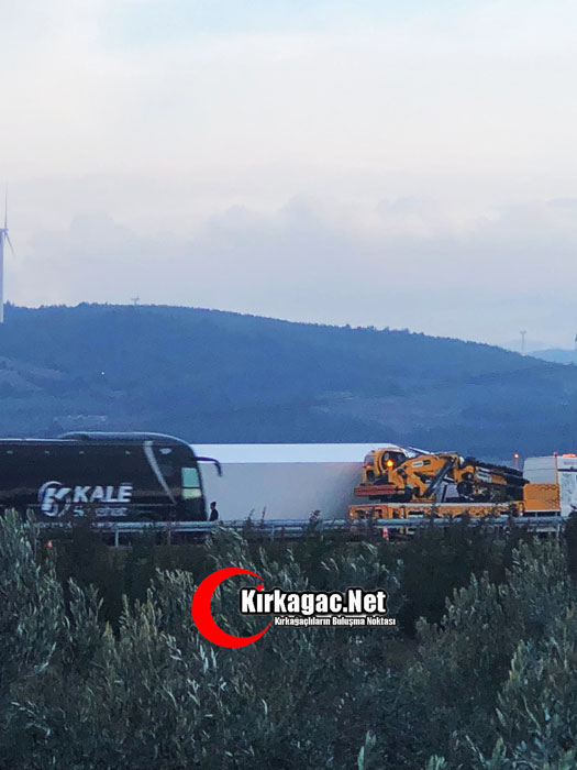 İzmir-İstanbul otobanının Kırkağaç bölümü Bakır mevkiinde seyir halinde gitmekte olan bir tır direksiyon hakimiyetinin kaybolması sonucu yoldan çıkarak bariyerlere çarptı.