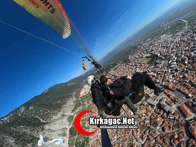 Kırkağaçlı spor adamı Mehmet Ertem’in öncülüğünde ilçemize gelen yamaç paraşütçüleri bu heyecanı bir kez daha yaşadılar.