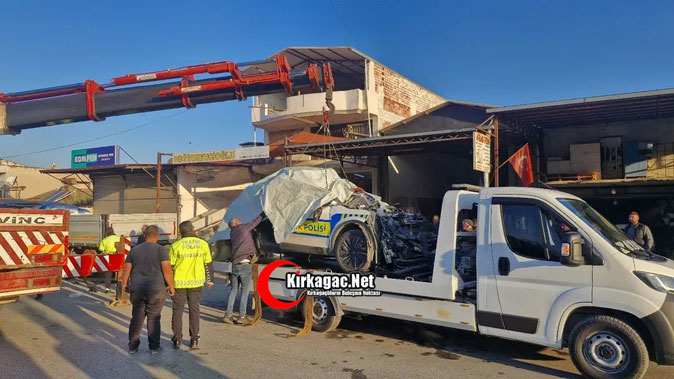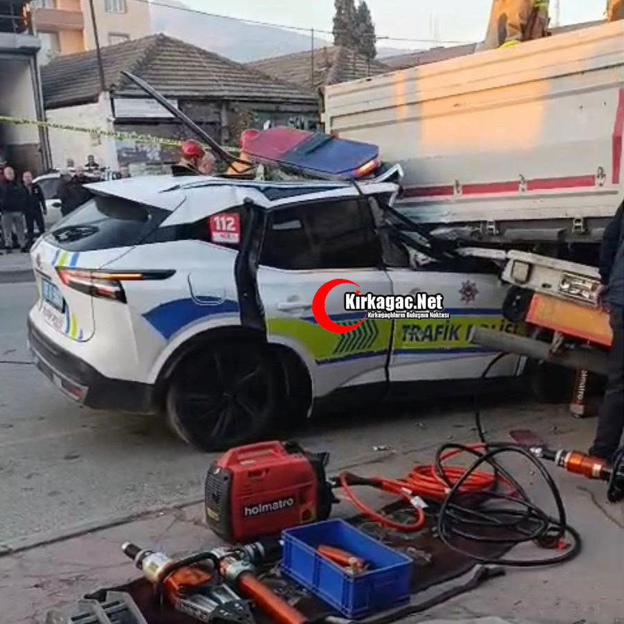 Alaşehir polis aracı un yüklü tıra çarptı.