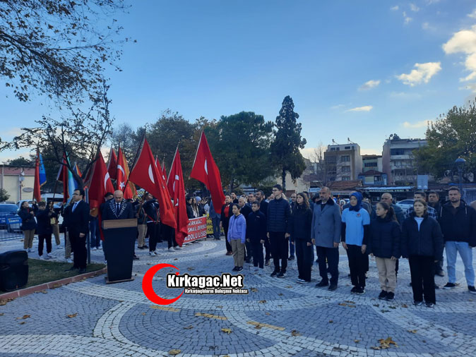 Cumhuriyet Meydanında yapılan çelenk sunma törenine Kırkağaç İlçe Milli Eğitim Müdürü Halil Boncuk, İlçe Milli Eğitim Şube Müdürü Durmuş Ateş, okul müdürleri, öğretmenler ve öğrenciler katıldı.
