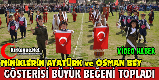 Kırkağaç Keskinoğlu Ana Okulu öğrencilerinin hazırladığı “Atatürk ve Osman Bey” konulu gösteri, stadı dolduran yüzlerce kişiye büyük coşku yaşattı. Osmanlı İmparatorluğunun kurulmasıyla başlayan, Dede Korkut’u, Şeyh Edebali’yi, Fatih Sultan Mehmet’i, Yavuz Sultan Selim’i, Kanun-i Sultan Süleyman’ı anlatan ve son olarak da Türkiye Cumhuriyeti’nin kurucusu Mustafa Kemal Atatürk’le muhteşem bir final yapan minik öğrenciler, birlik ve beraberlik mesajı verdiler.