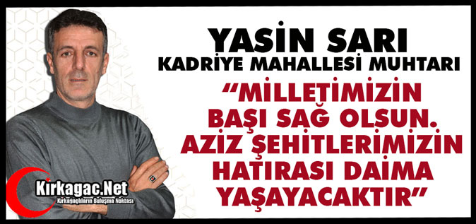 Kadriye Mahallesi Muhtarı Yasin Sarı, uçak kazasında hayatını kaybeden şehitlerimiz için bir baş sağlığı mesajı yayınladı.