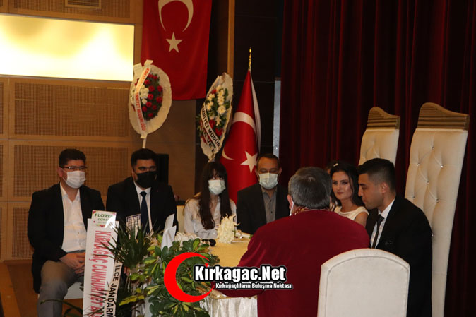 Genç çiftlerin nikah törenini Kırkağaç Belediye Başkanı Yaşar İsmail Gedüz kıyarken, nikah şahitliklerini ise Kırkağaç Kaymakamı Murat Büyükköse, Garnizon Komutanı Albay Ahmet Sel, Cumhuriyet Başsavcısı Tunay Pulça ve Kırkağaç İlçe Emniyet Müdürü Sadık Demir.