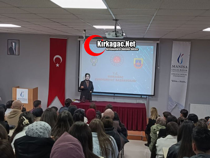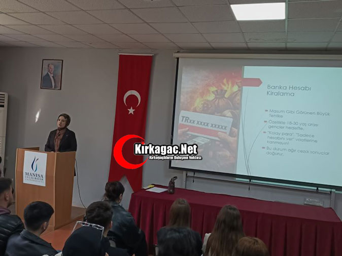 Kırkağaç Cumhuriyet Savcısı Rukiye Gültekin, öğrencilerle bir araya gelerek dijital dolandırıcılık konusunda farkındalık oluşturmayı amaçlayan bir sunum gerçekleştirdi.