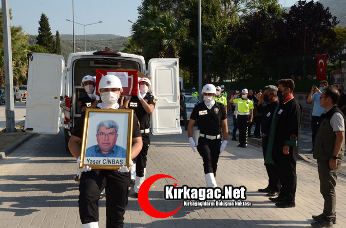 Antalya'nın Manavgat ilçesindeki orman yangınını söndürme çalışmaları sırasında Gebece Mahallesi Beloluk mevkiinde şehit olan 2 orman işçisinden biri olan Yaşar Cinbaş için çalıştığı kurum Manisa Kırkağaç Orman İşletme Şefliği önünde cenaze töreni düzenlendi.