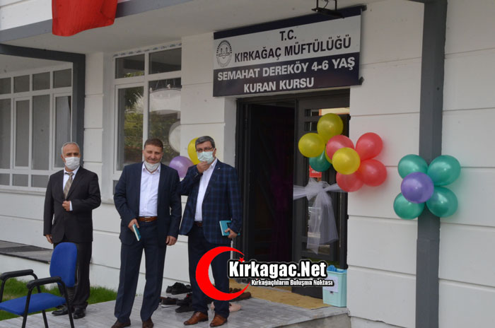 140 kişinin eğitim göreceği 4 sınıftan oluşan Semahat Dereköy 4-6 yaş Kuran Kursunu ilçeye kazandıran hayırsever işadamı Nusret Dereköy'e plaketini Kaymakam Murat Büyükköse, üzerinde ayetlerin yer aldığı tabloyu ise Manisa İl Müftü Yardımcısı Ömer Kayhan ve Kırkağaç Belediye Başkanı Yaşar İsmail Gedüz birlikte verdiler.