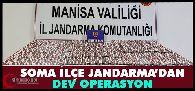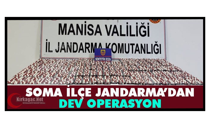 Manisa’nın Soma ilçesinde jandarma ekiplerince düzenlenen uyuşturucu operasyonunda başka bir ilden getirildiği belirlenen binlerce sentetik ecza ele geçirilirken, 2 şüpheli tutuklanarak cezaevine gönderildi.