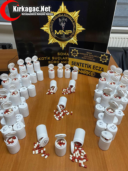Komşu ilçe Soma'da polis ekiplerinin gerçekleştirdiği operasyonda 4 bin 726 adet sentetik ecza ele geçirildi.