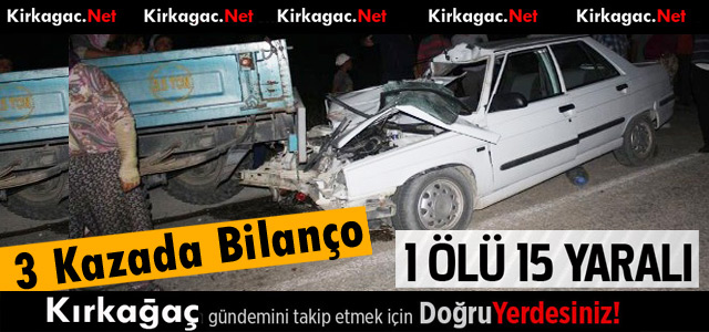 3 KAZADA BİLANÇO 1 ÖLÜ 15 YARALI