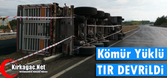 Yine bir TIR sürücüsü kavşakta direksiyon hakimiyetini kaybederek devrildi. TIR'da bulunan tonlarca kömür yola ve refüje saçılırken sürücü ise yaralanarak hastaneye kaldırıldı.