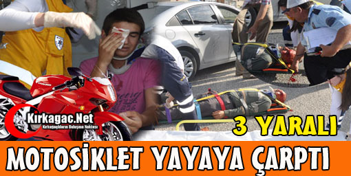 MOTOSİKLET YAYAYA ÇARPTI 3 YARALI