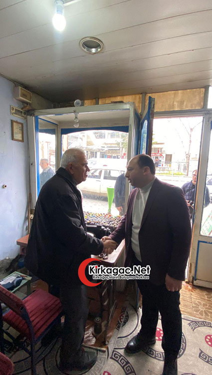 Pala'ya esnaf ziyaretlerinde Demokrat Parti Kırkağaç İlçe Başkanı Kadir Orçun, eski Bakır Belediye Başkanı Ramazan Martin ile çok sayıda partili eşlik etti.