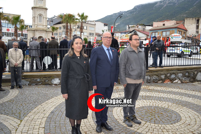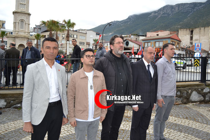 CHP Kırkağaç İlçe Başkanı Mehmet Karaköylü, Yönetim Kurulu üyeleri ve tüm partililer parti binasından toplu halde gelerek çelenk sunumunun ardından toplu halde basın açıklaması yaptılar.